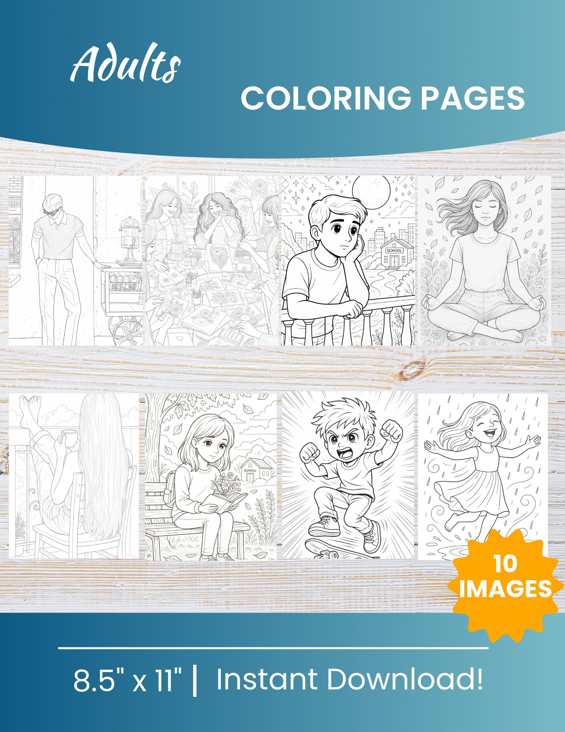 10 high-quality PDF coloring pages at 300 DPI resolution