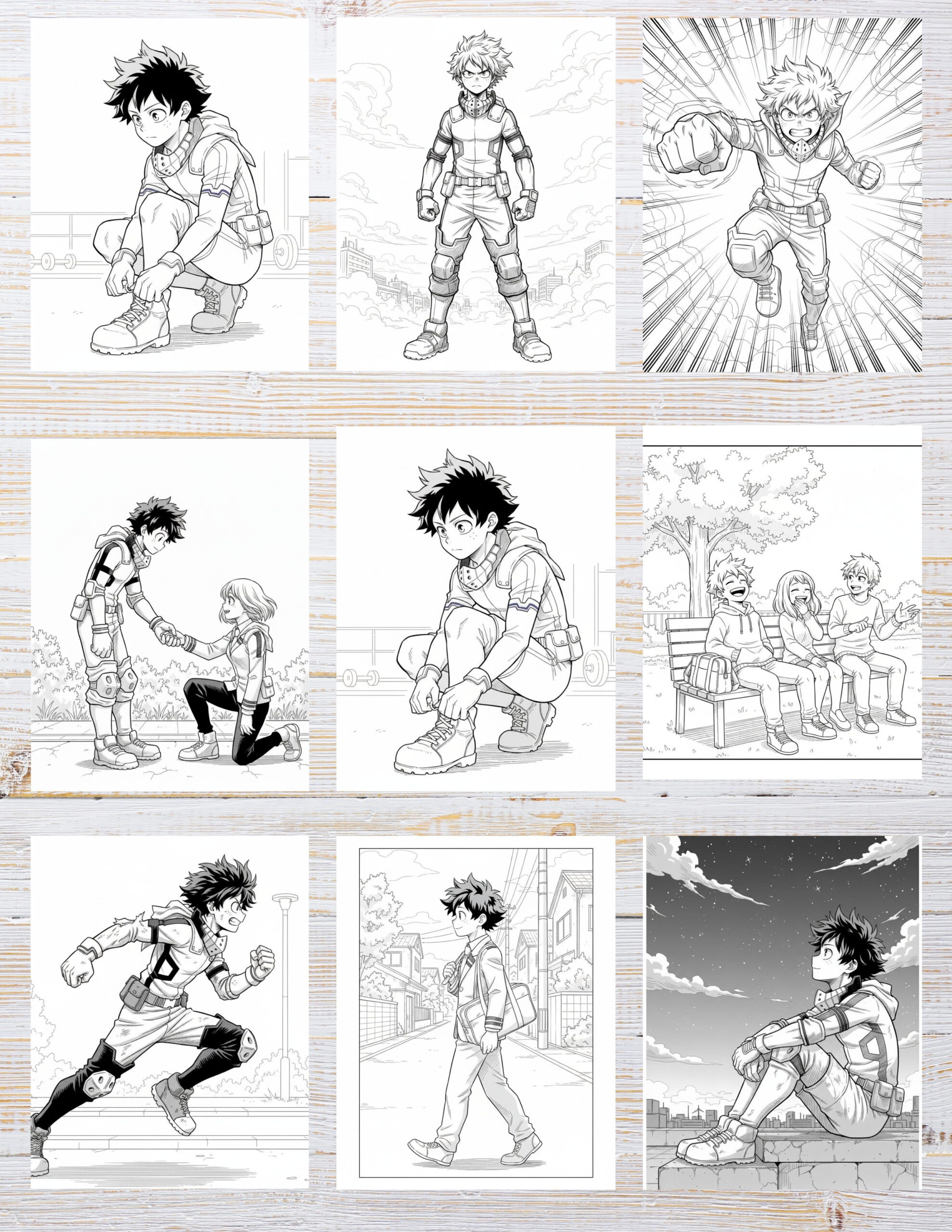 Action-packed scenes inspired by realistic Deku coloring pages