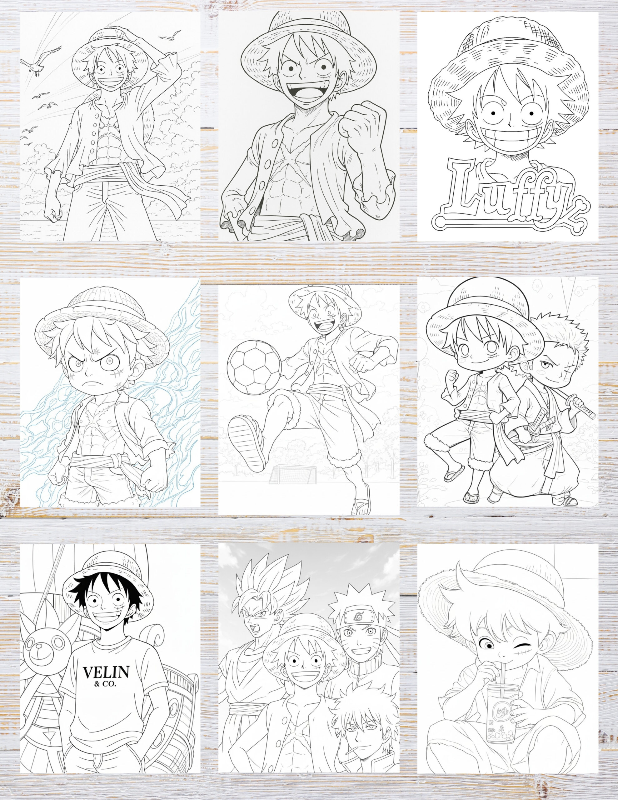 Action-packed scenes inspired by realistic Luffy coloring books