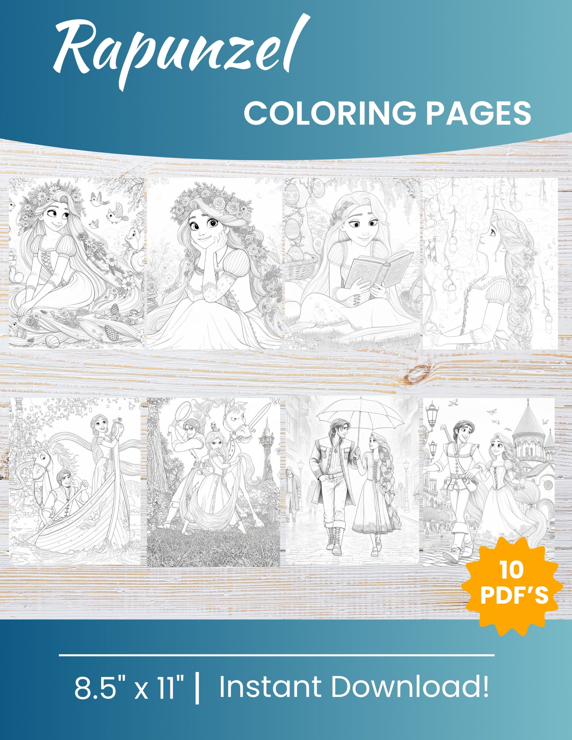 These aren’t just pages—they’re fairy-tale adventures waiting for your colors, where each stroke brings Rapunzel’s magical world to life.