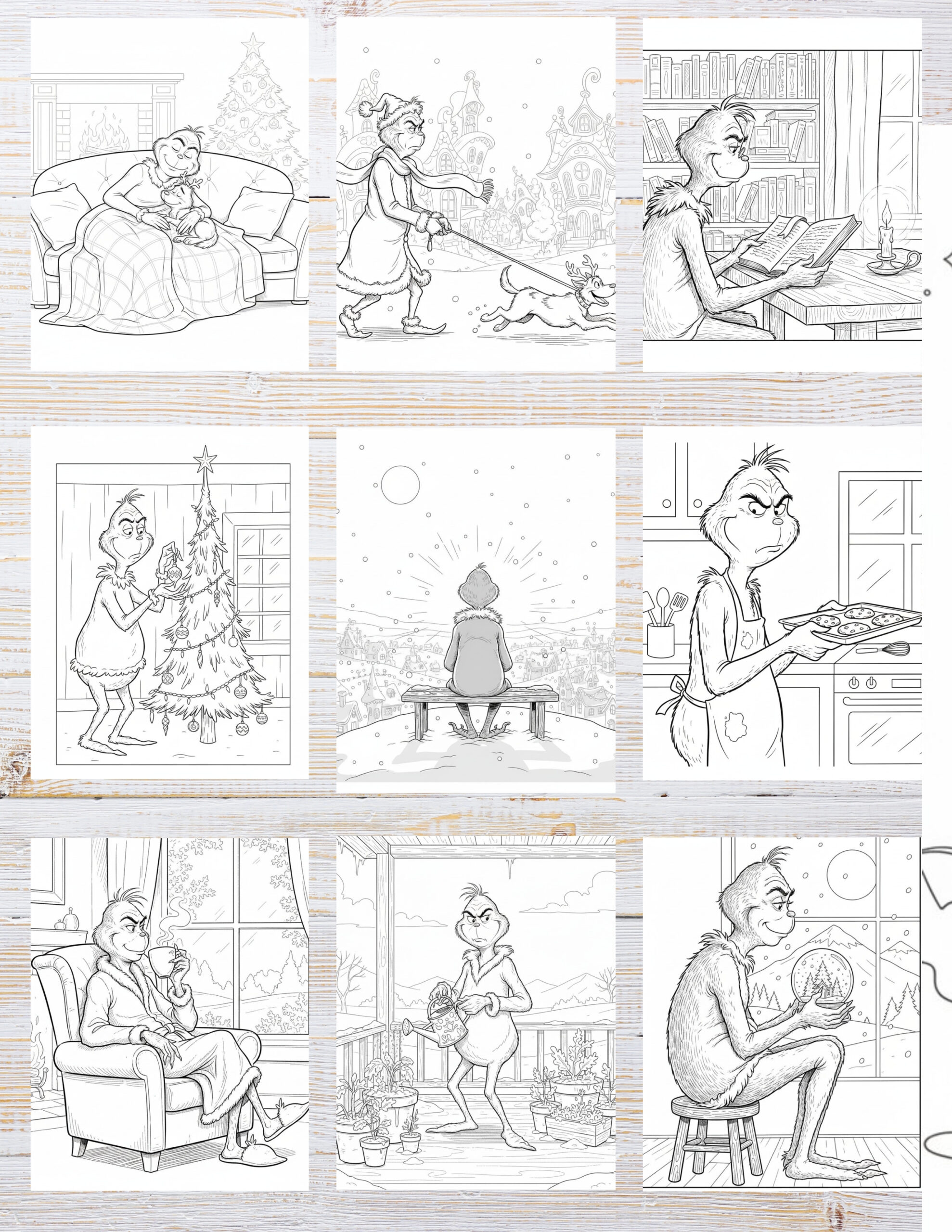 • Illustrations suitable for a The Grinch coloring book for adults