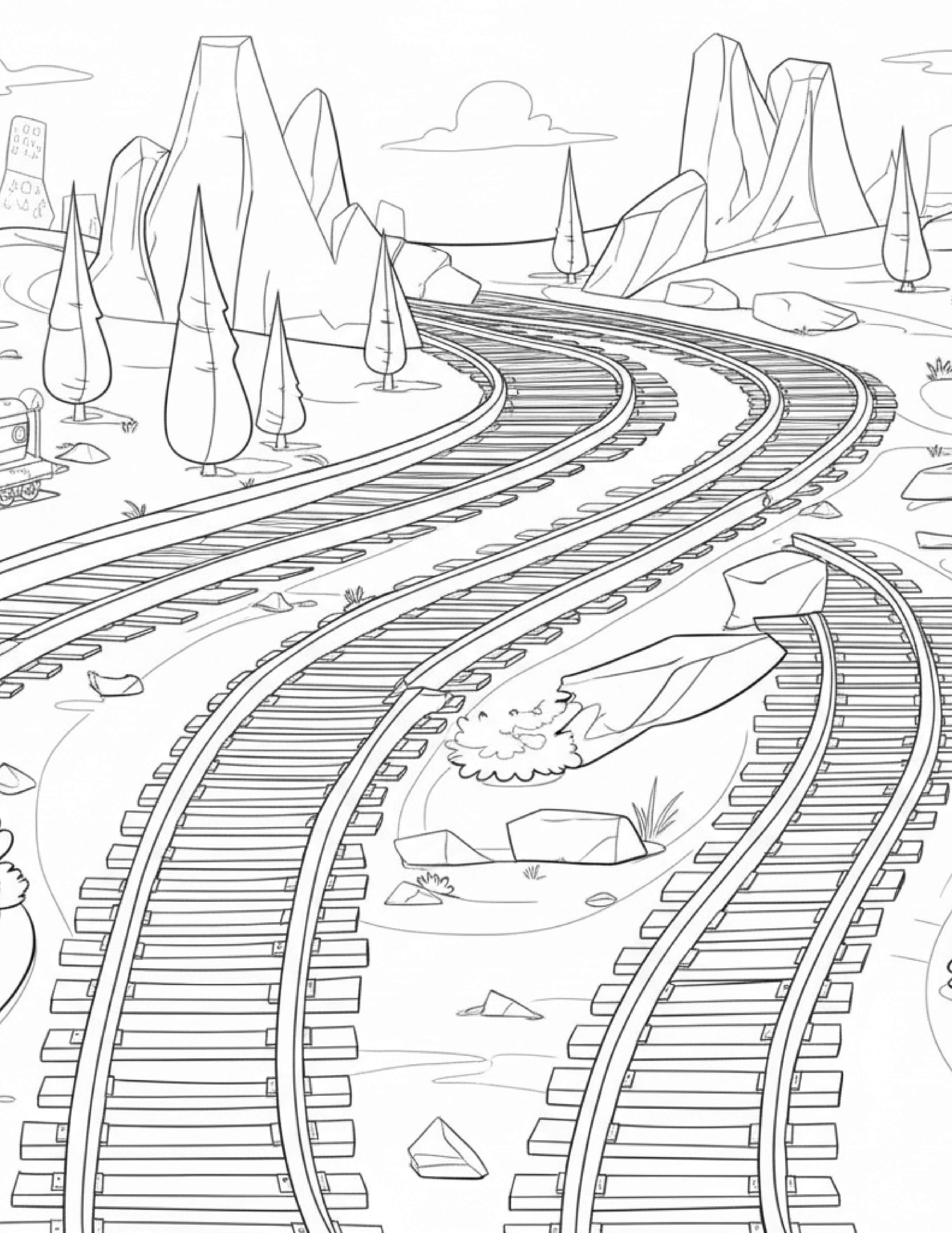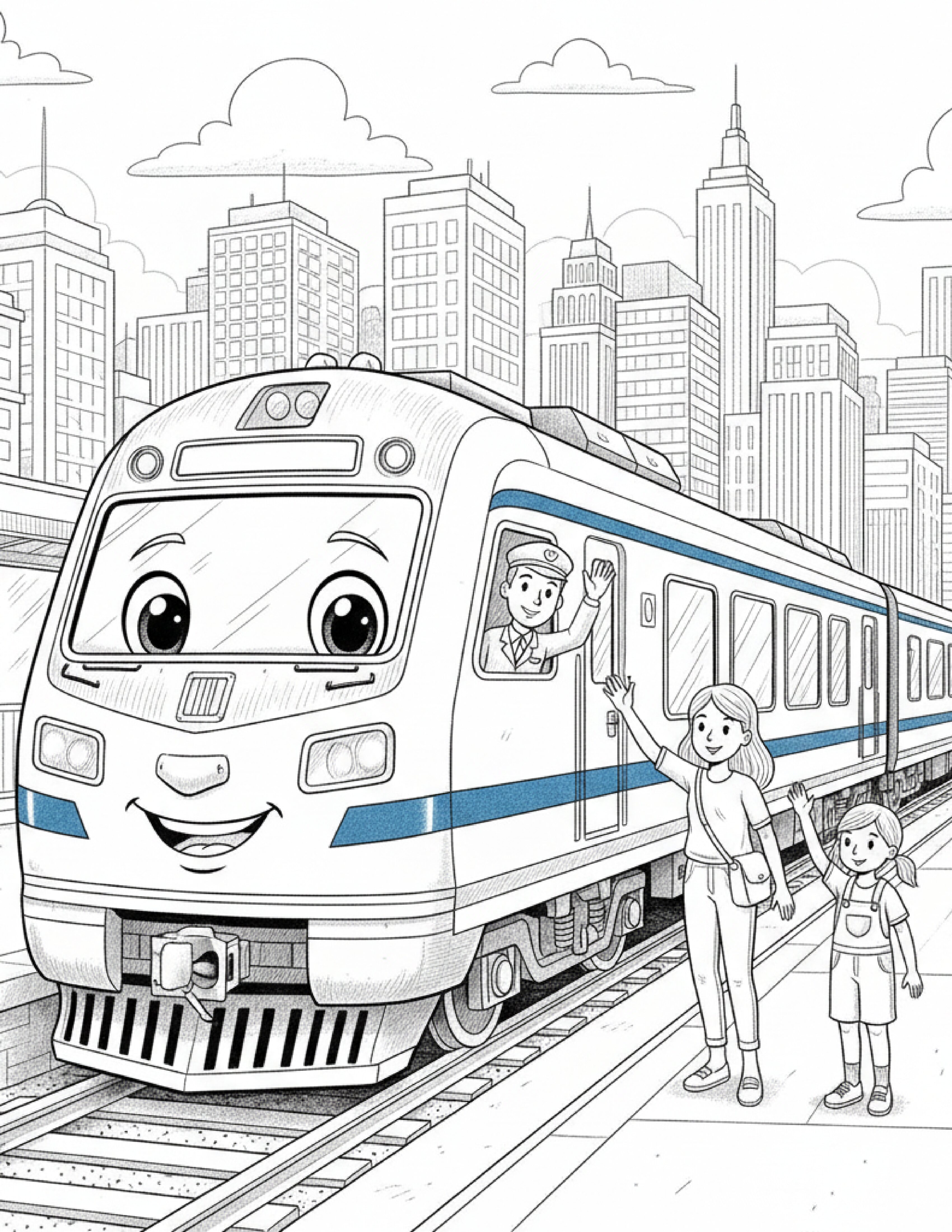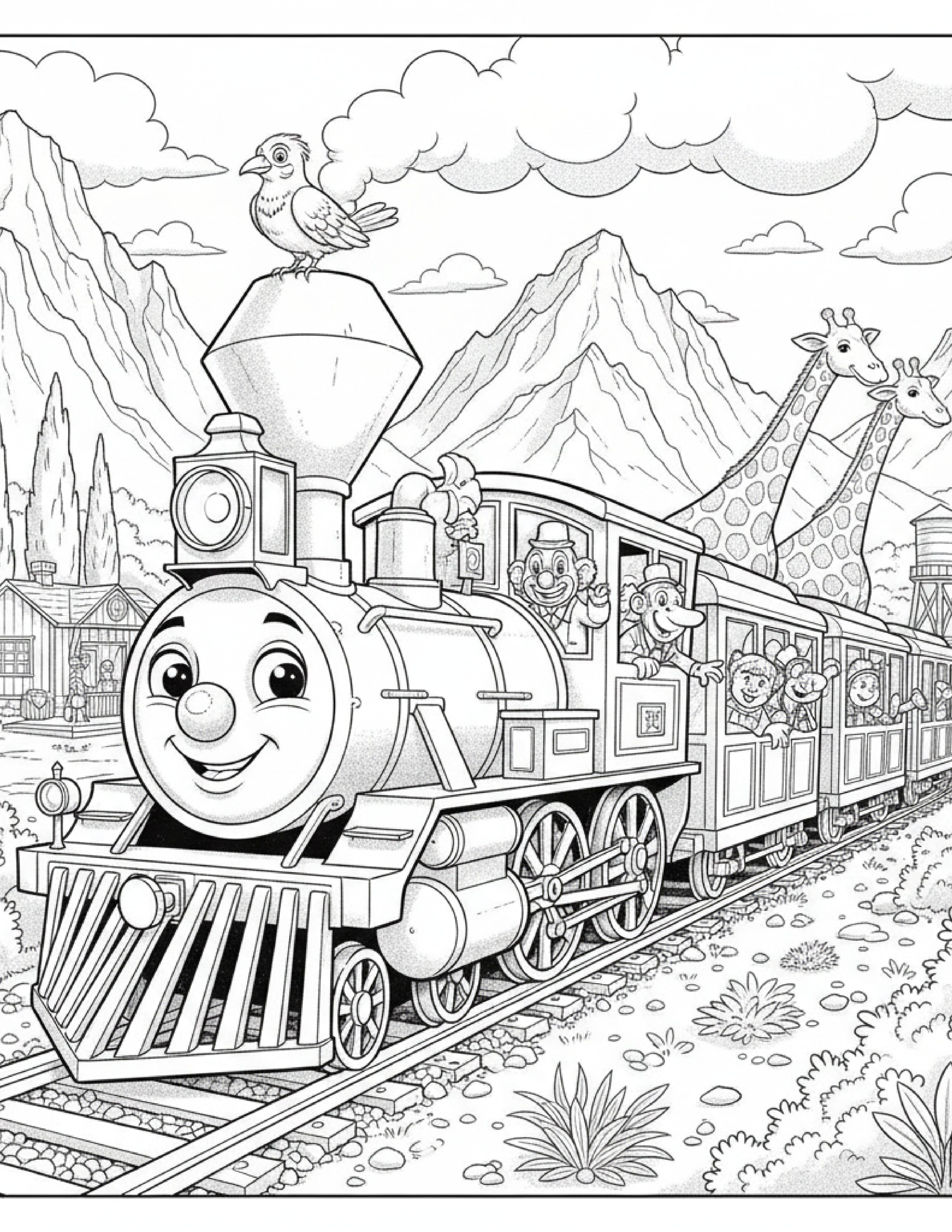 Train coloring pages with playful engines and carriages. Printable PDFs for kids and adults, perfect for creative, imaginative, and stress-free fun.