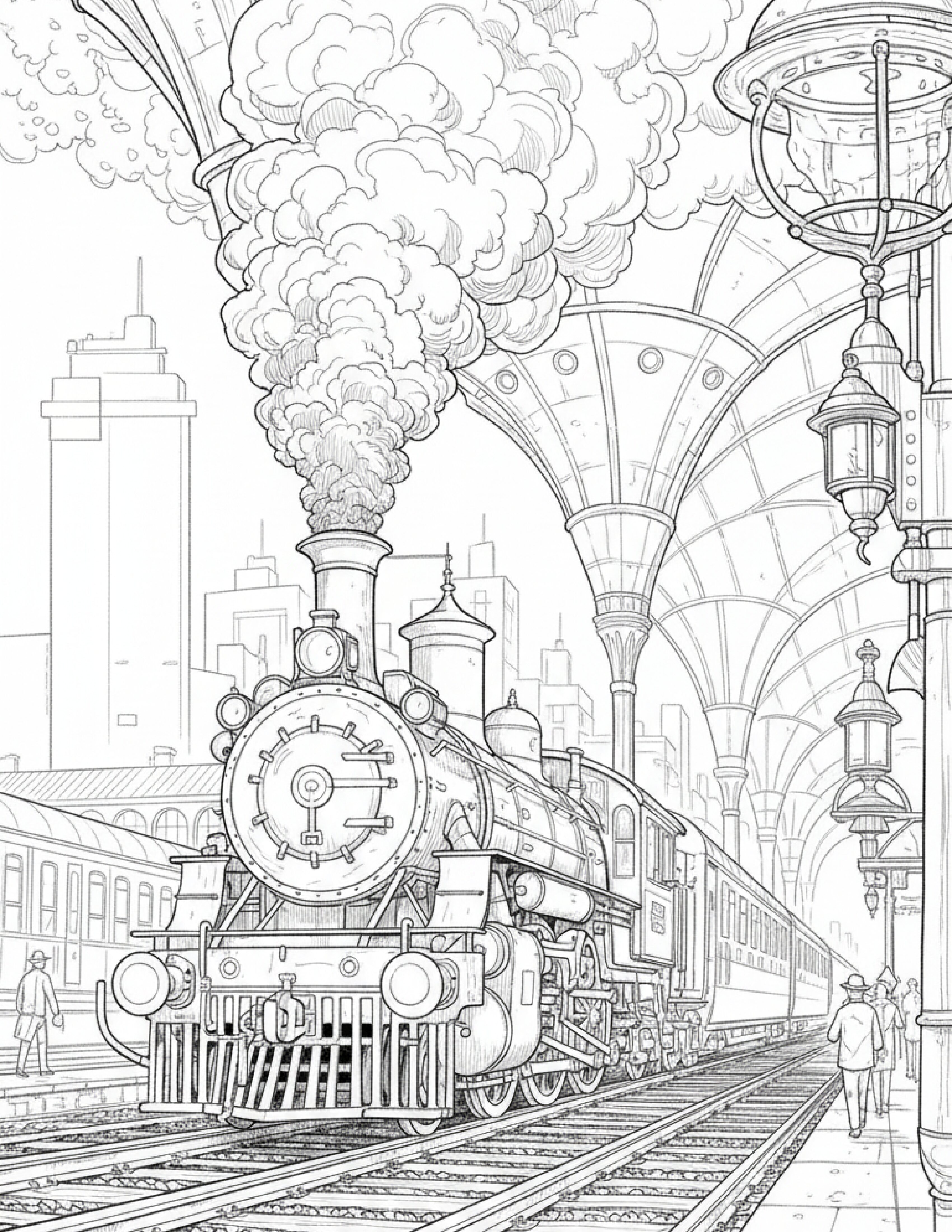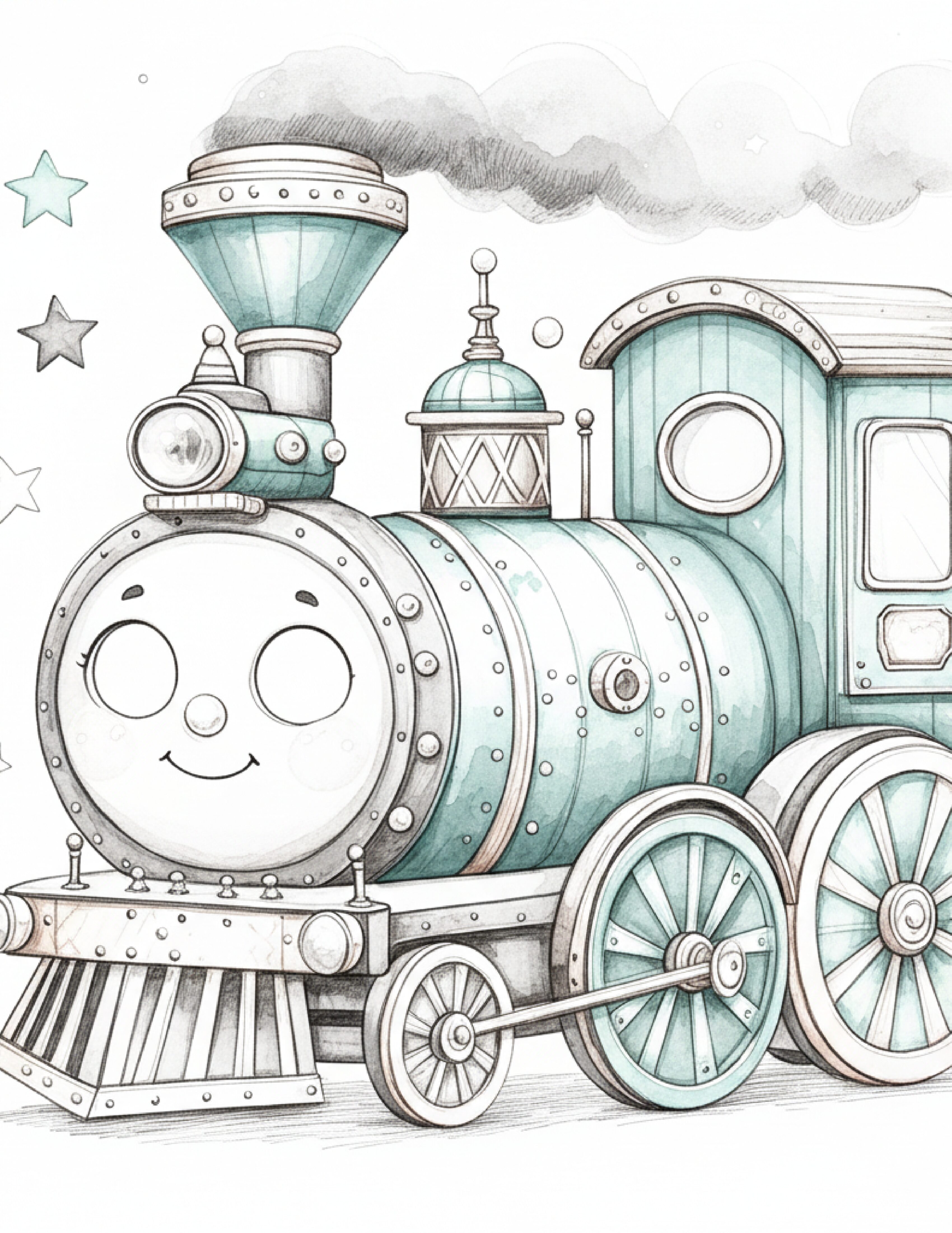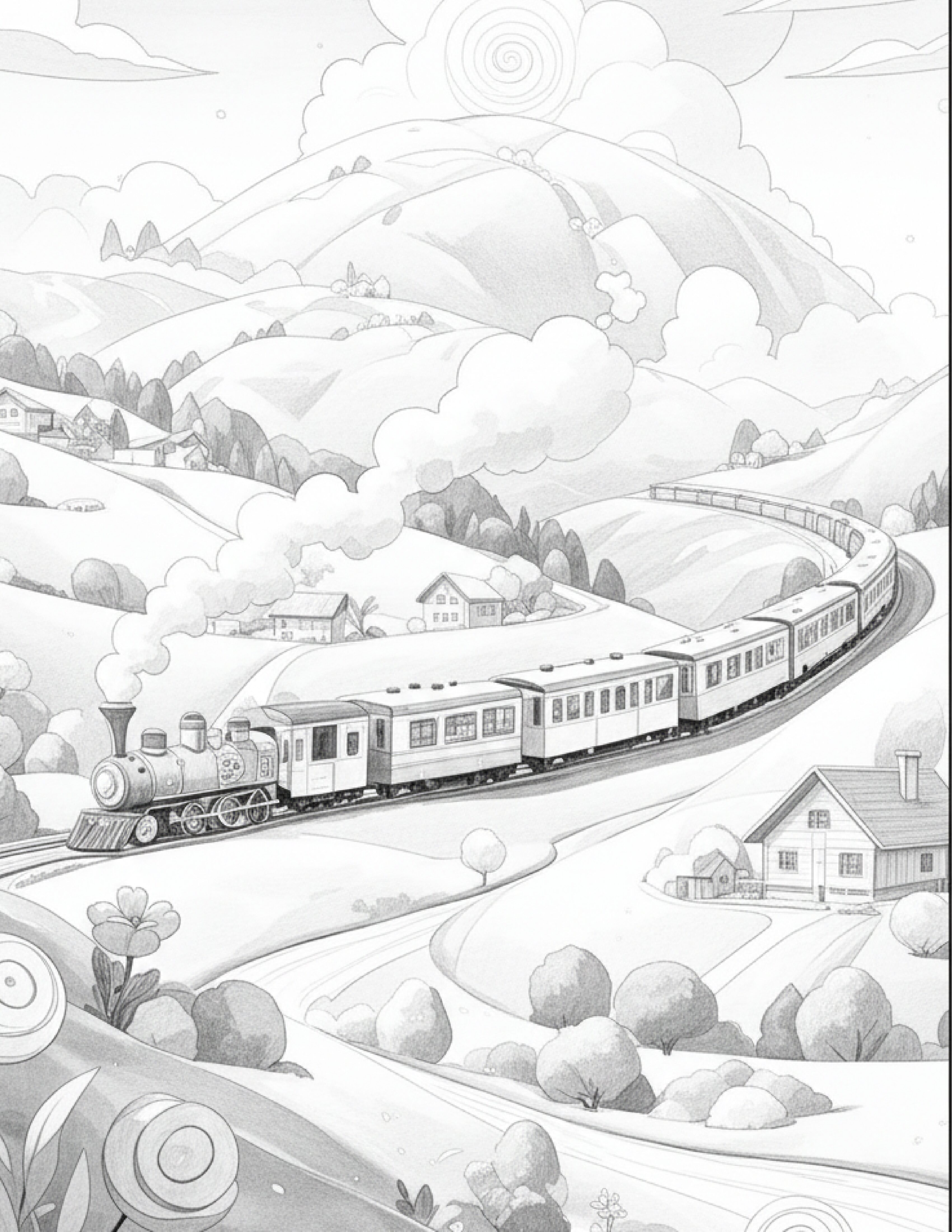 Train coloring pages with playful engines and carriages. Printable PDFs for kids and adults, perfect for creative, imaginative, and stress-free fun.