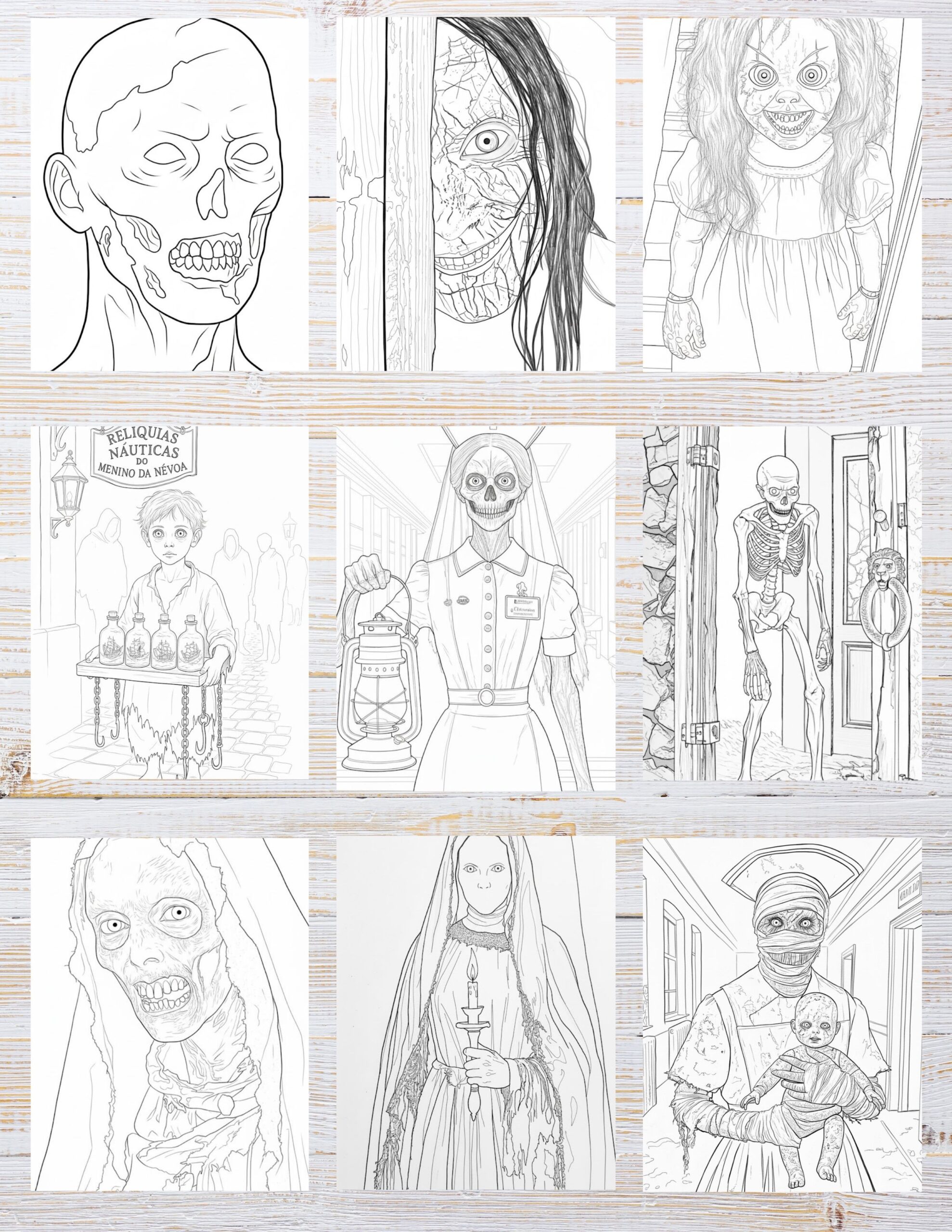 • A mix of simple and detailed designs suitable for a zombie coloring book for adults